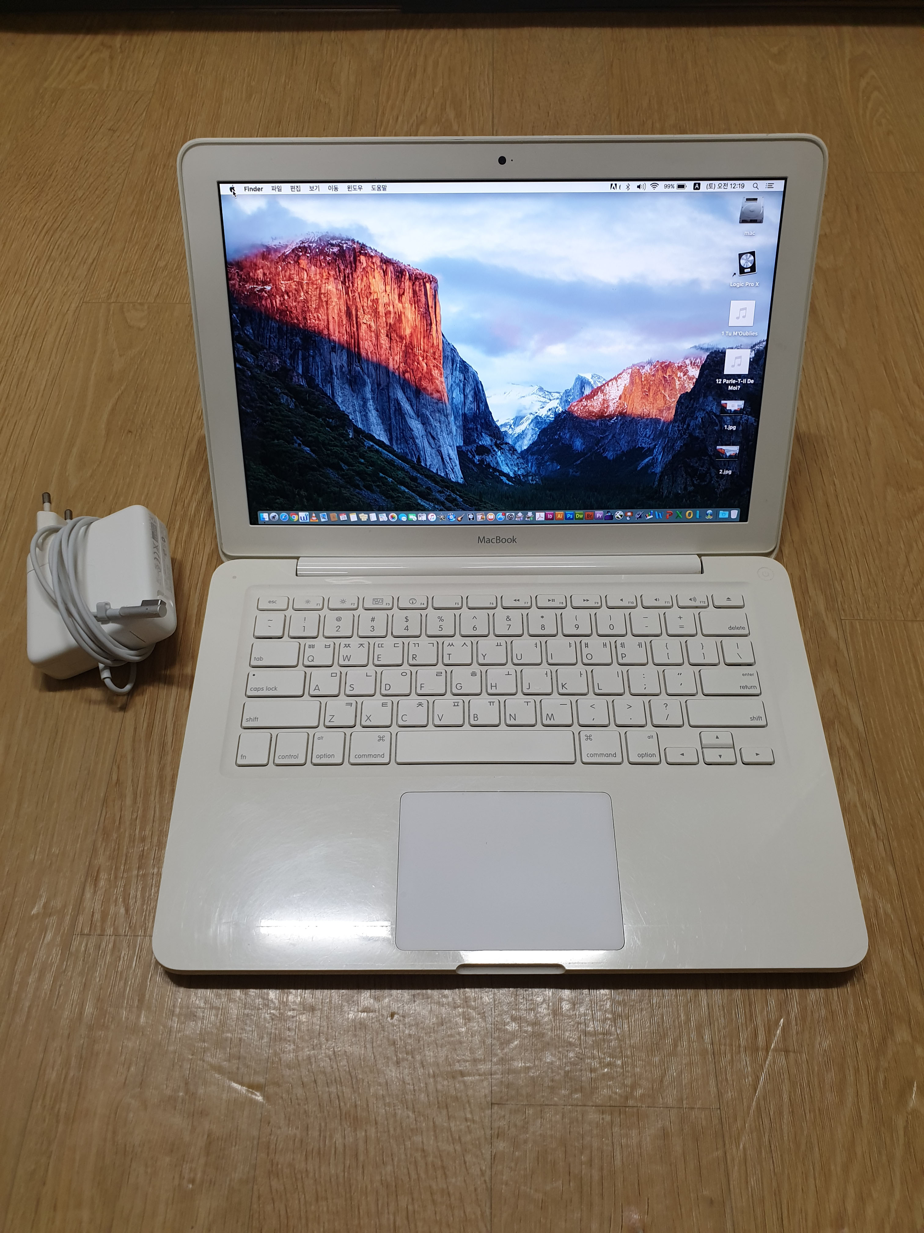 구성품은 배터리 장착된 화이트맥북과 애플정품 충전기입니다