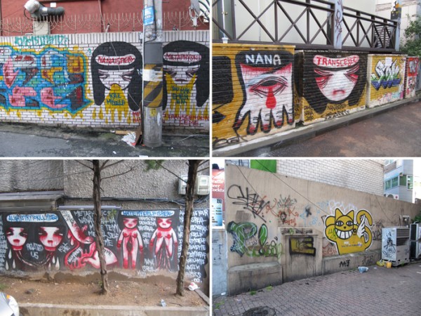 상업적인 그림부터 홍대 미술과 학생들의 거리미술전.. 그리고 그래피티, 온갖 낙서들.